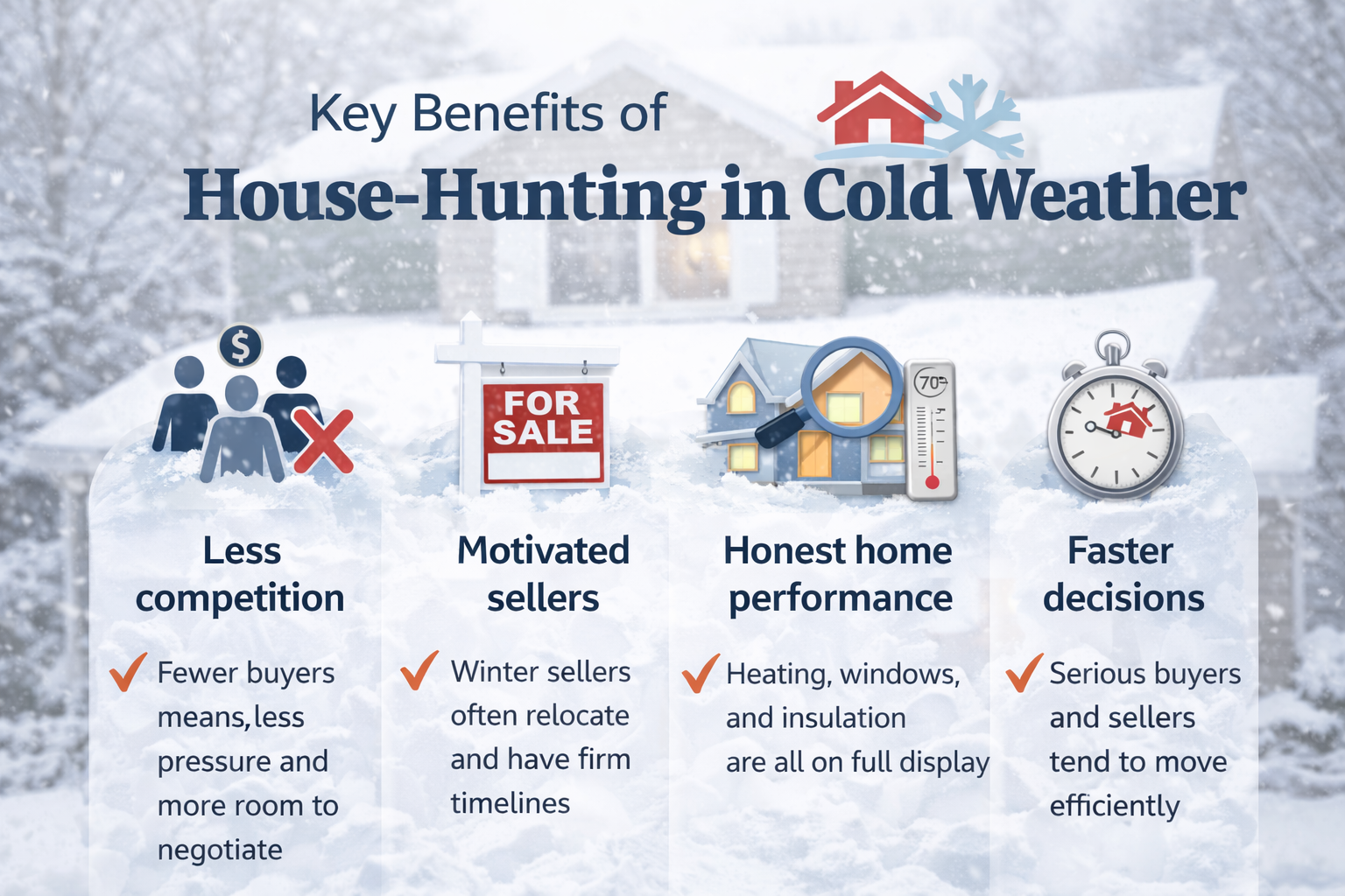 You’re not alone. Cold temperatures, snow-covered yards, and shorter daylight hours can make home showings feel less inviting than they do in spring or summer. But here’s the truth: winter can be one of the best times to find the right home—if you know how to navigate it.