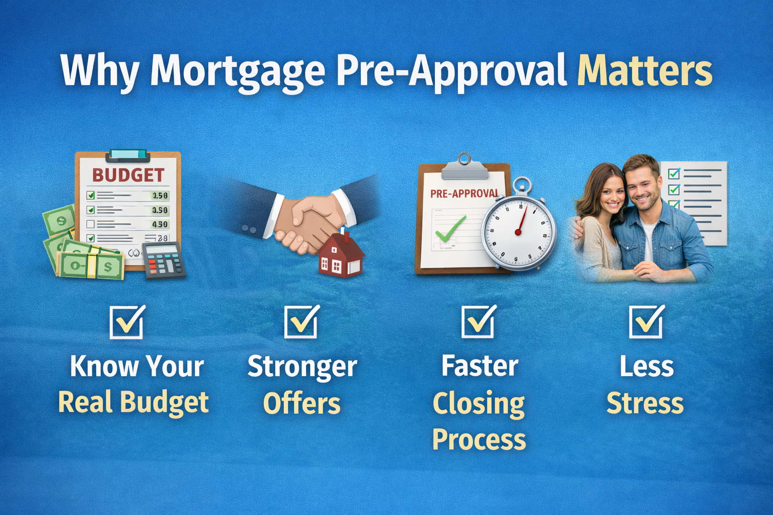 Getting pre-approved isn’t just paperwork—it’s your roadmap to a smoother homebuying journey. Here’s why: