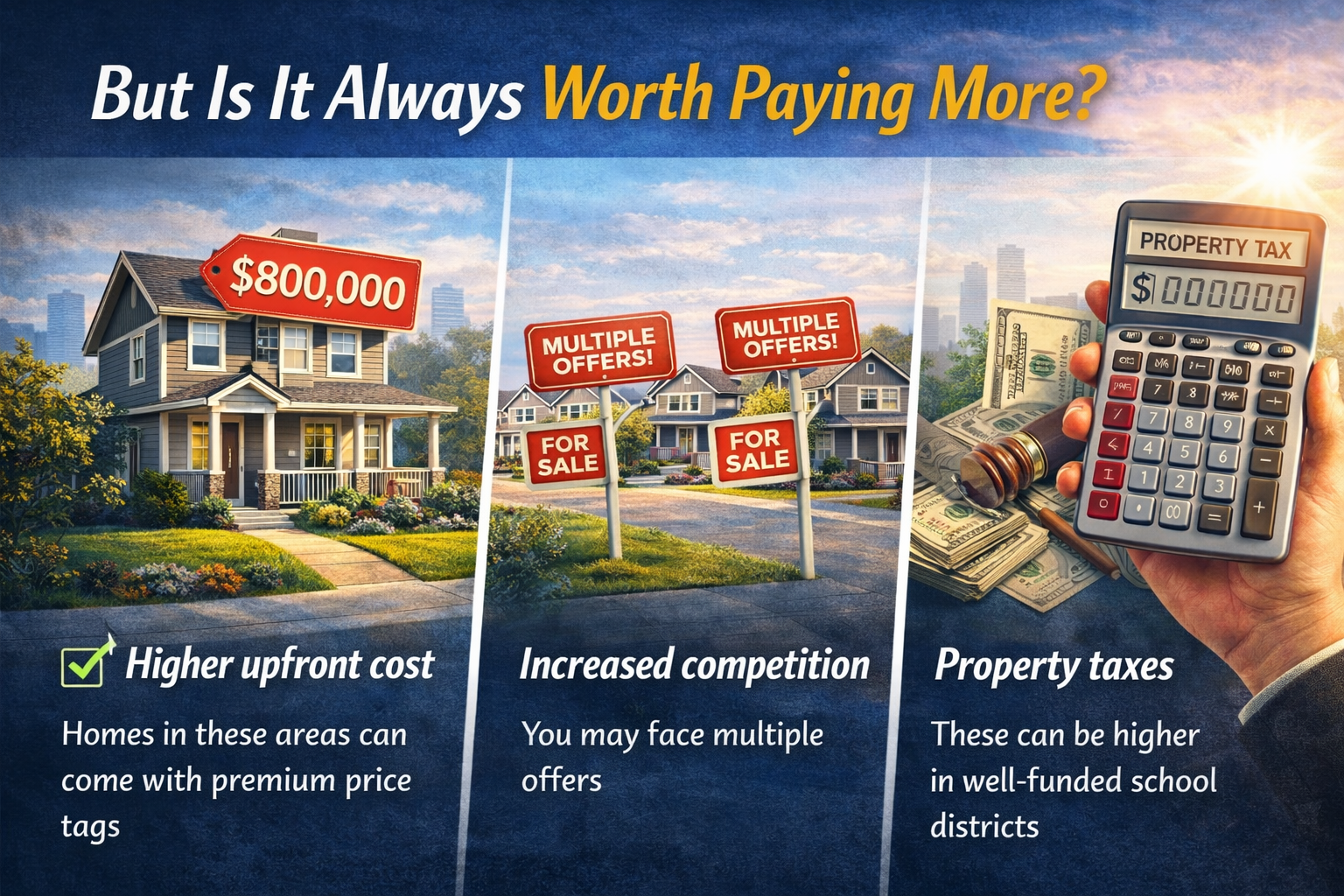 While buying in a top school district has clear advantages, it’s not always the perfect fit for everyone.